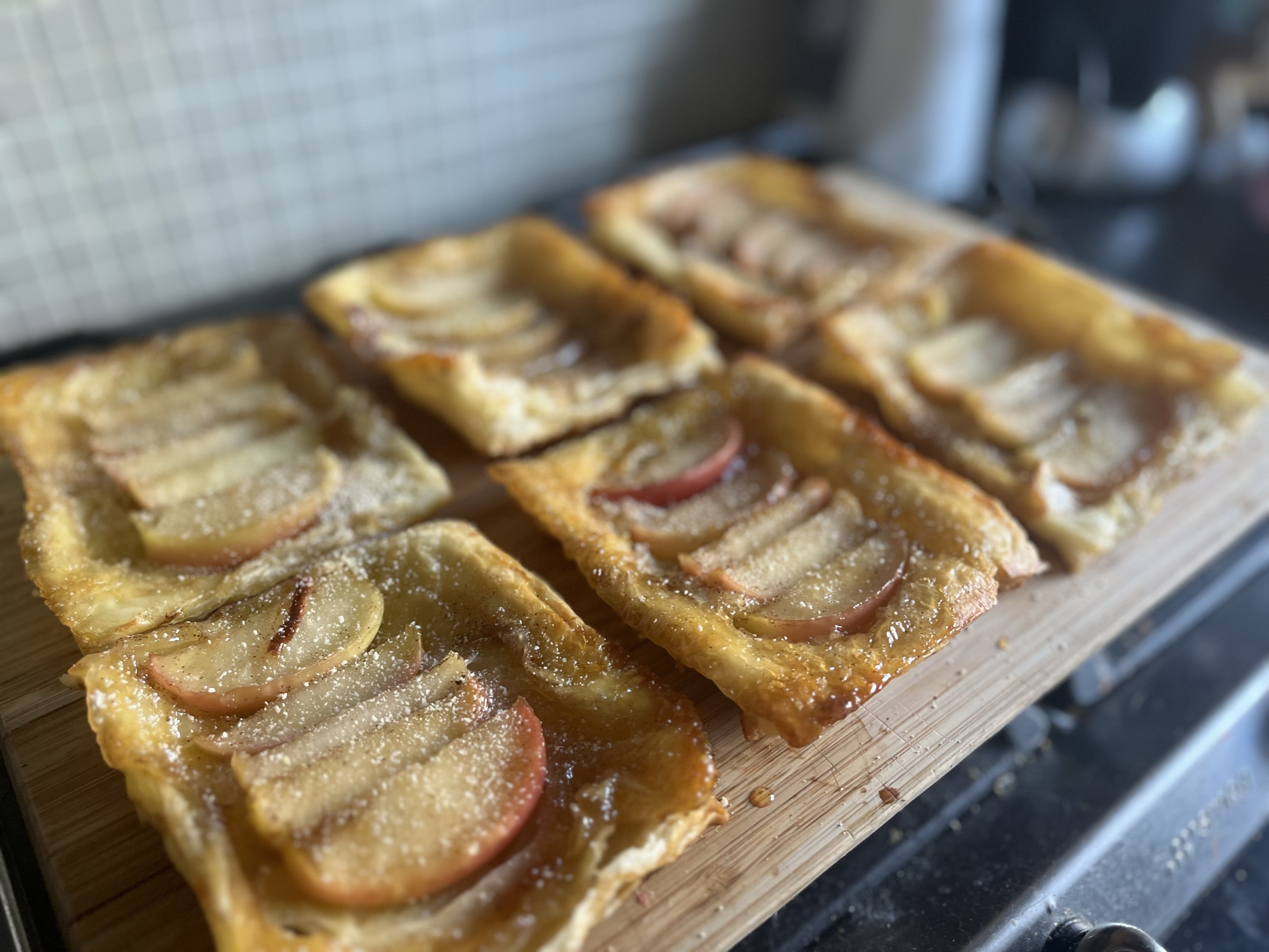-Remove from the oven and leave to cool. Don’t be tempted to flip these over just yet as the honey/apples will still be warm and wont stay stuck to the pastry.