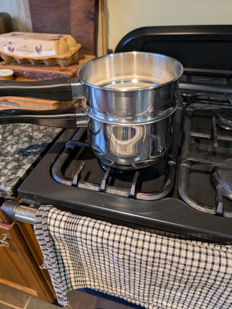 -Place the oats and water or milk in a small pan or a porringer (a pan suspended over another pan with boiling water a bit like a bain marie)